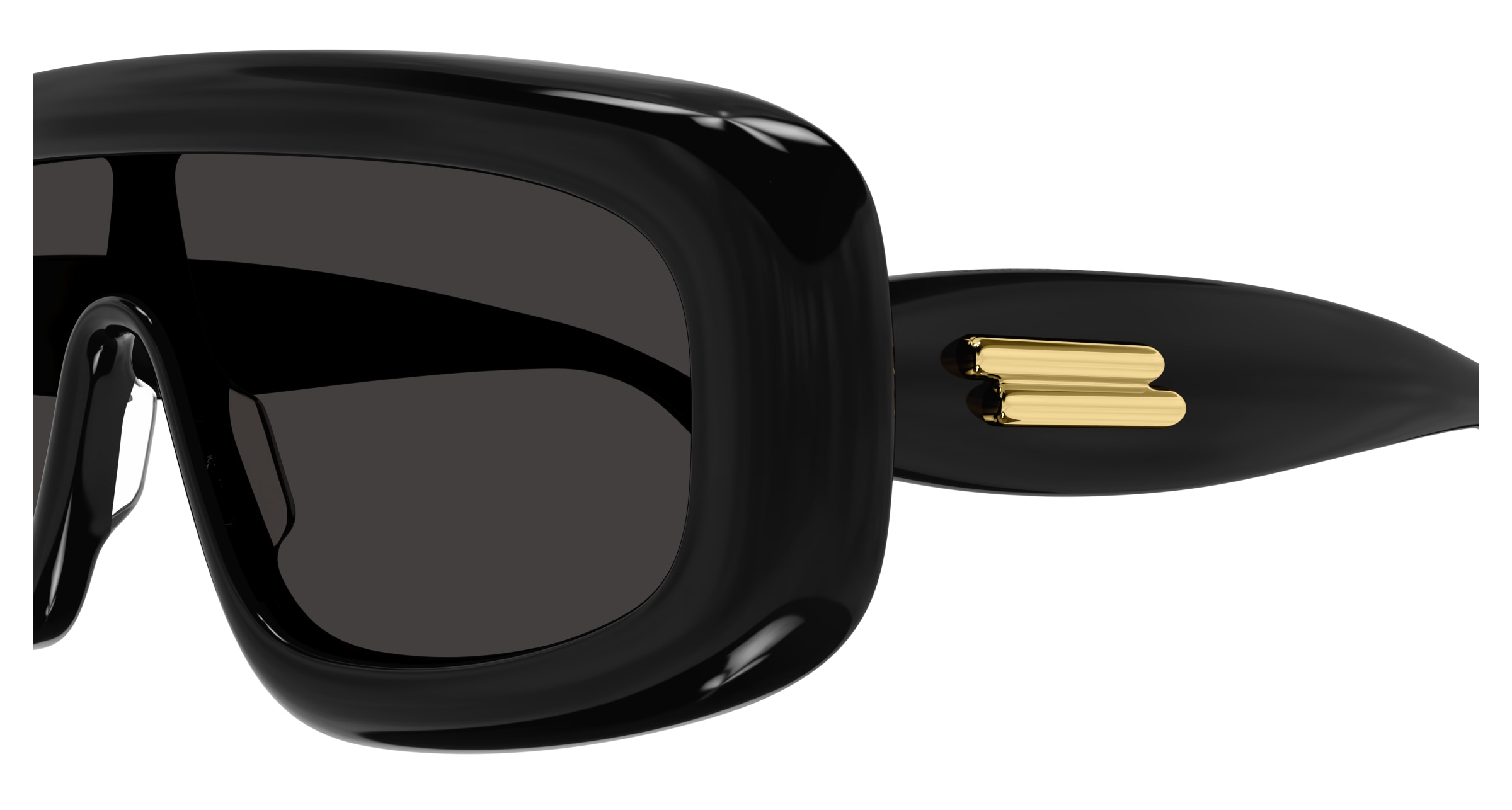 Máscara em acetato, com volumes arredondados nas hastes e na frente. Hastes de metal enriquecidas pelo icónico double ribbon, com uma nova forma arredondada.