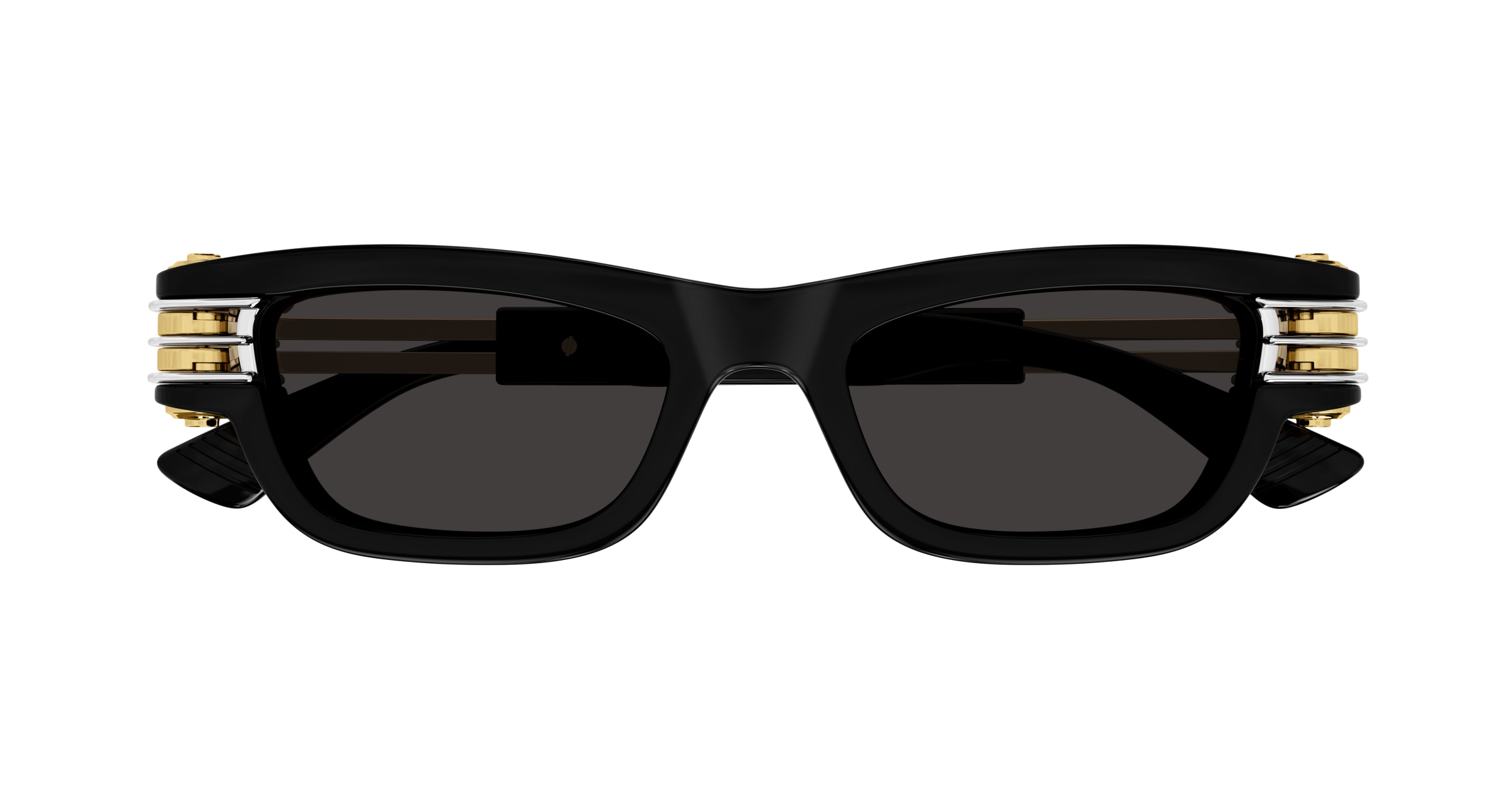Modelo retangular em acetato. Haste em metal e acetato, com logotipo escrito.