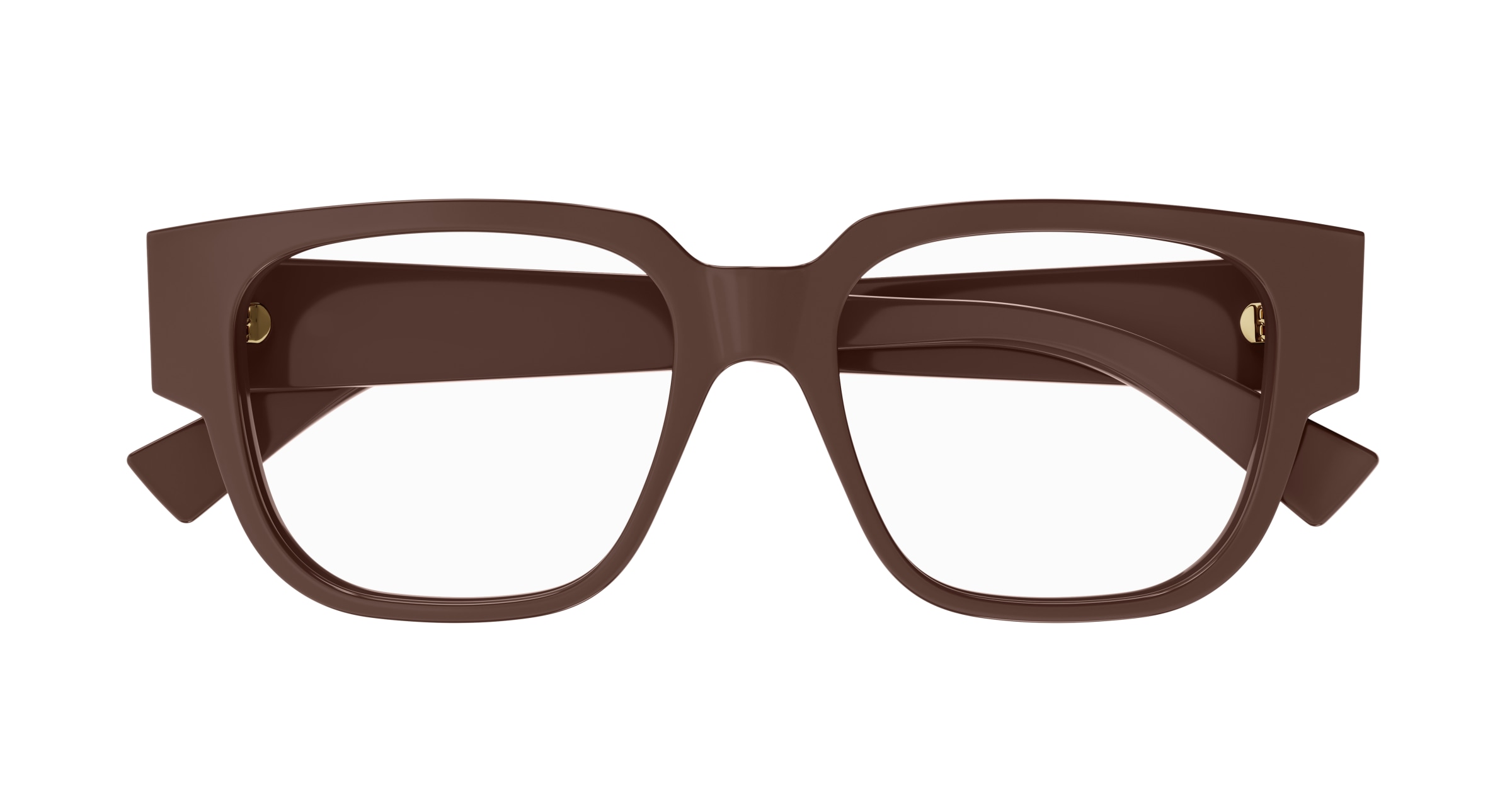 Modelo retangular em acetato. Haste com detalhe triangular e logotipo escrito.