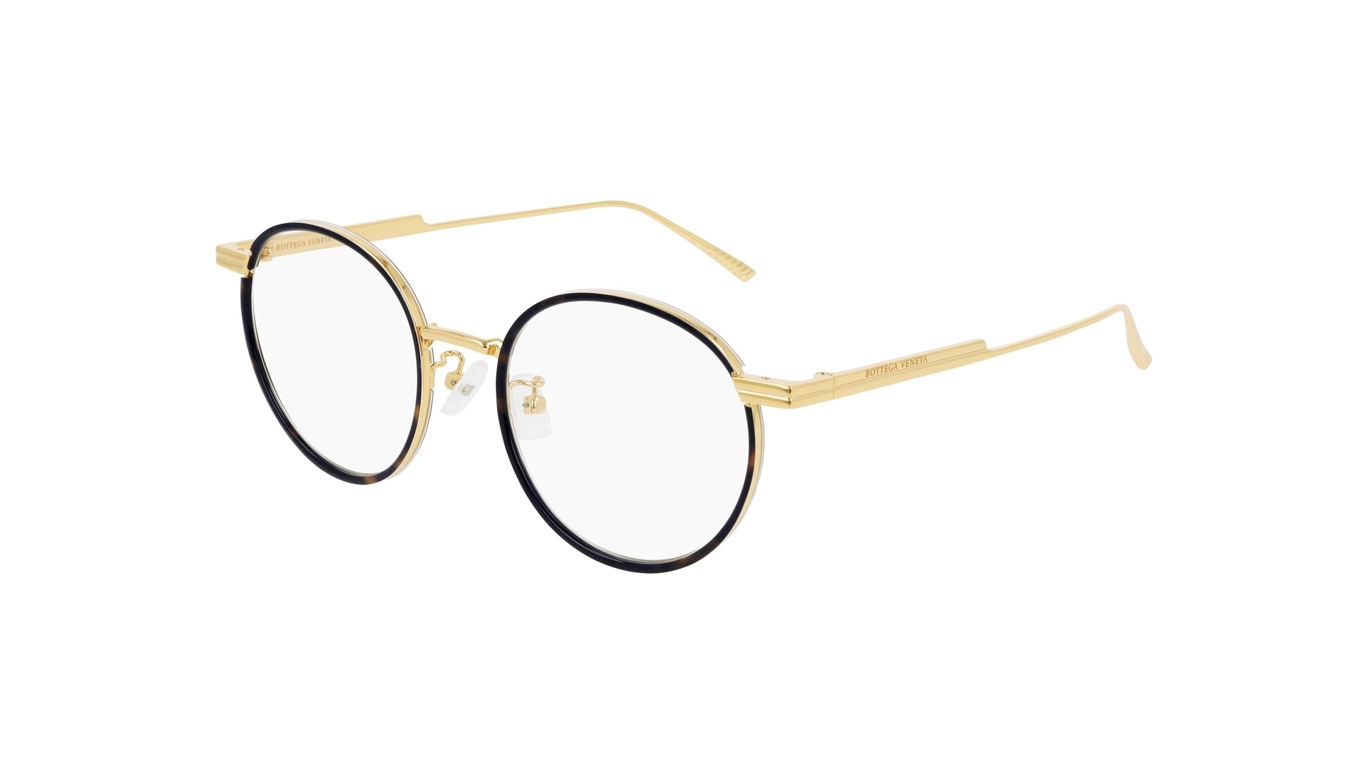 Estilo Unissexo Pantos caracterizado por estrutura metálica e aros windsor em acetato para brincar com as cores. Hastes de metal enriquecidas pelo novo detalhe icônico da fita com franjas e mais confortáveis graças aos detalhes antiderrapantes na parte interna das pontas. Logotipo da Bottega Veneta gravado a laser na parte externa das hastes. Paleta de cores bem equilibrada entre metais foscos e brilhantes.