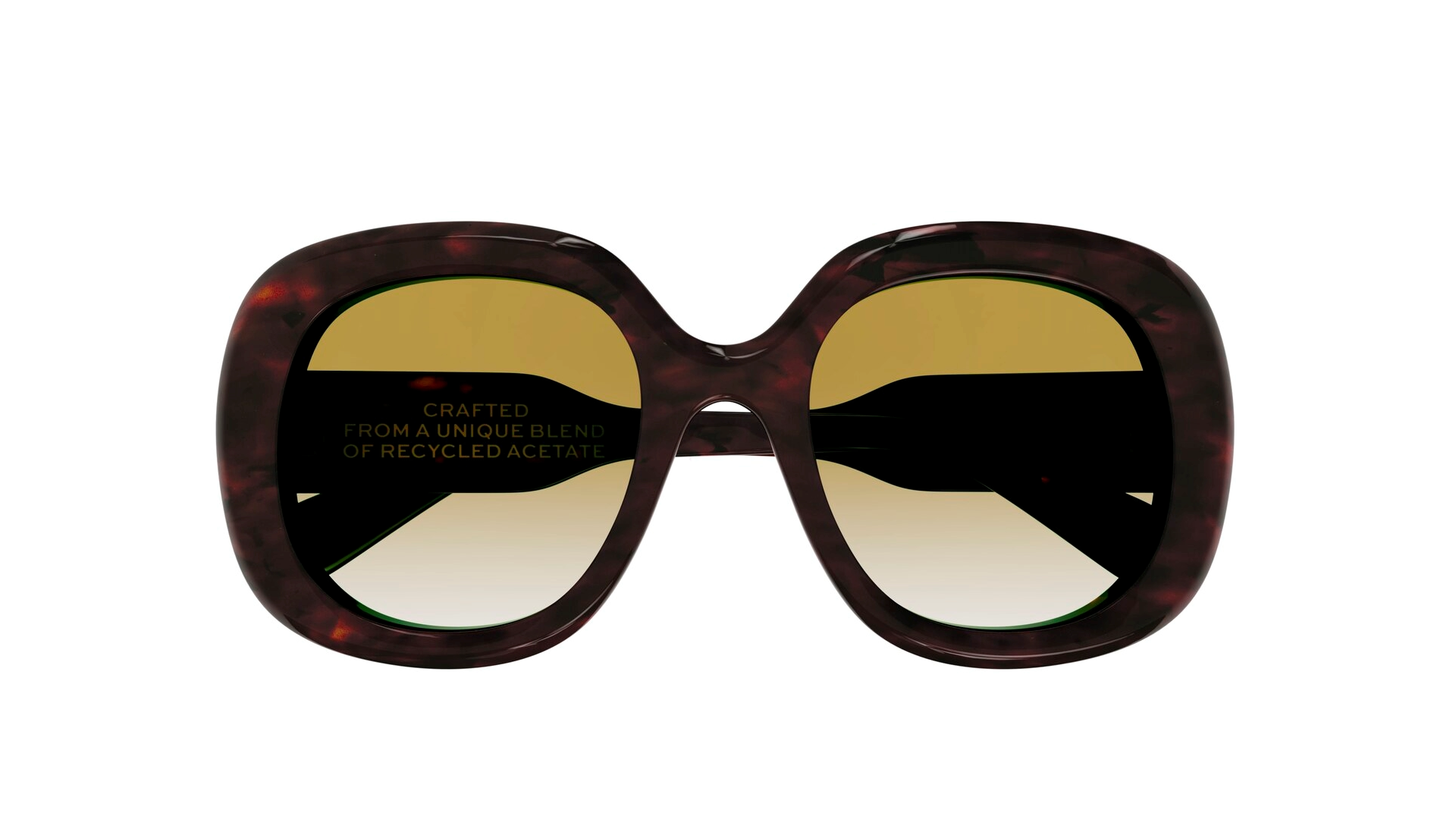 Armação extragrande quadrada feita em acetato 100% reciclado, e com uma construção espessa, combinado com lentes em nylon de origem natural.