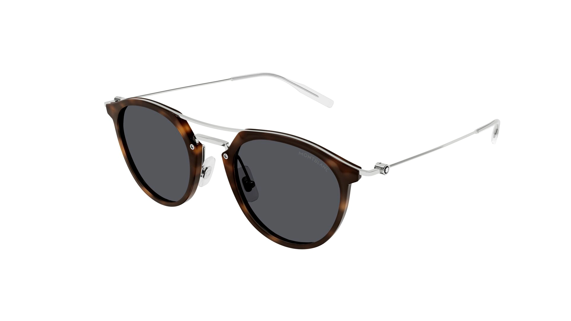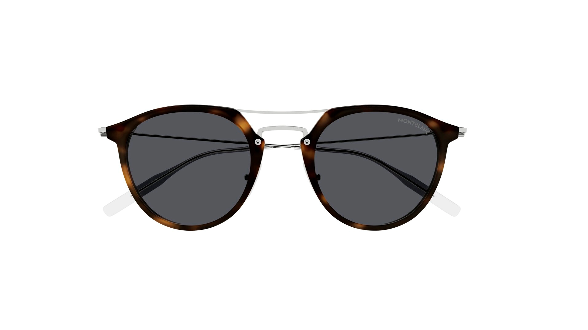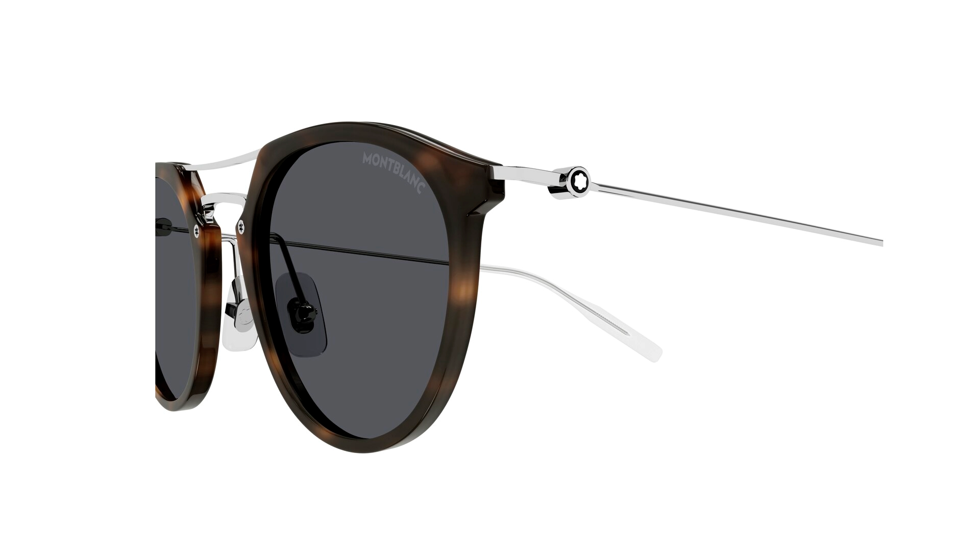 Armação com ponte dupla em metal com aros injetados ultraleves. Emblema flutuante original aplicado na lateral externa da haste ultrafina de metal e logotipo Montblanc gravado a laser na lente esquerda.