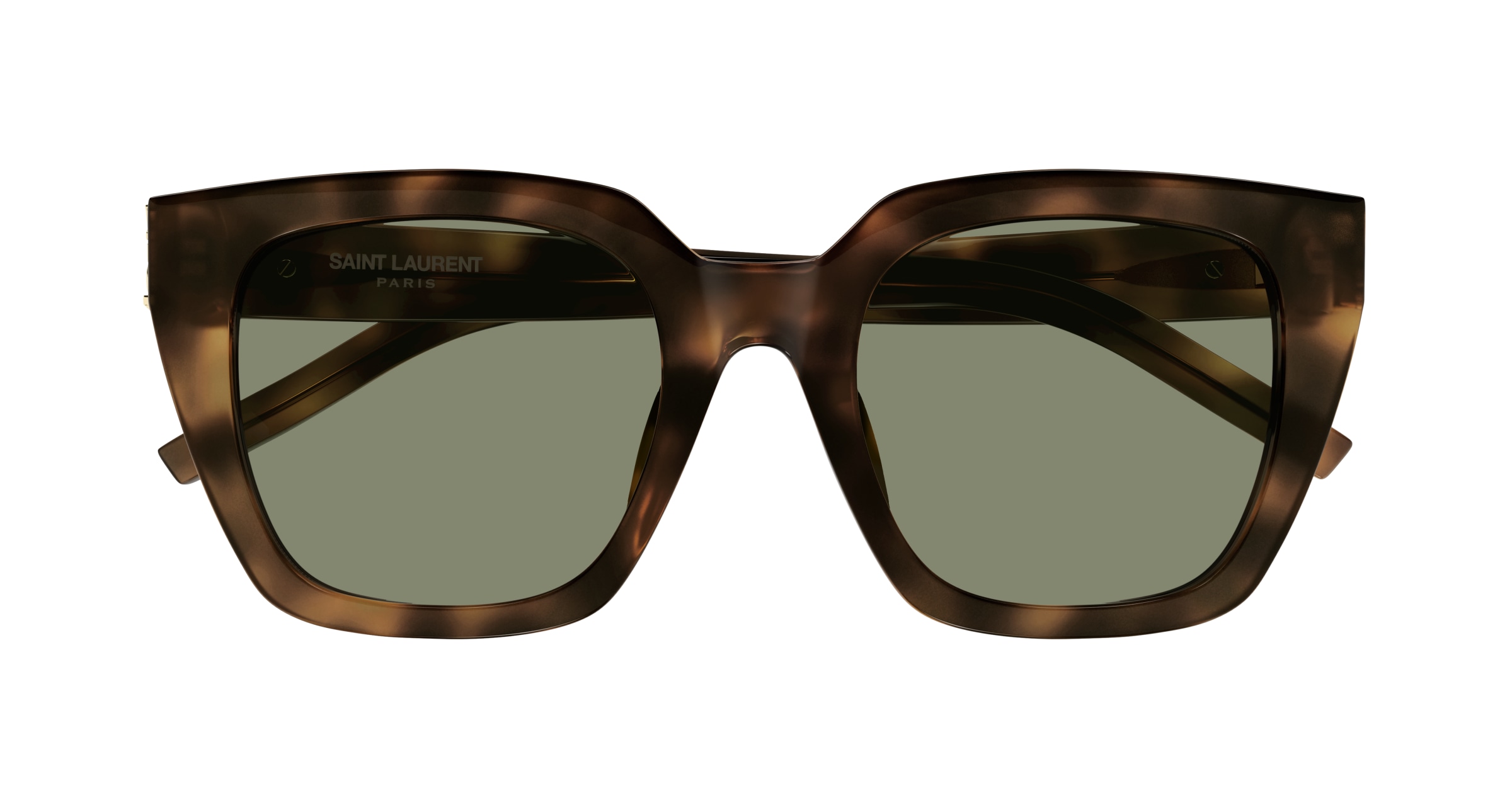 Formato quadrado, em acetato. Logotipo YSL nas charneiras.